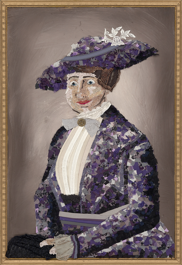 I believe that the message is in the medium of art, and I strive to use recycled/repurposed materials. I want you to think not just about aesthetic level, but additionally about where it came from. I repurposed fabric from donated/used bras to create a fabric collage portrait. Often when I think of the suffrage movement, I am inspired when I think of everything they accomplished while wearing restrictive corsets. The suffrage movement represents a breaking of bondage, I believe the shift from corsets to bras also represents that breakage from bondage. While it seems taboo to highlight bras, undergarments are generally something very personal, yet is also very universal. Voting is the same; very personal, yet universal at the same time. We all know a bra is there for support, and I believe that through the medium of bras, viewers could reflect on what it means to support women to participate in politics.  Social change takes the work of many people. As a Minnesotan, I’m proud that the the first woman nominated to run for Senate is from Minnesota. I hope my unusual bra art helps you remember the name Anna Dickie Olson and gives you a reason to bring her up in conversation. We stand on the shoulders of women who came before us.